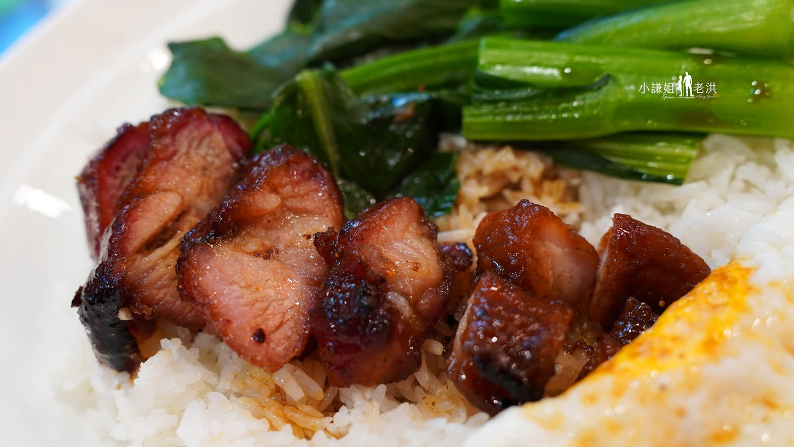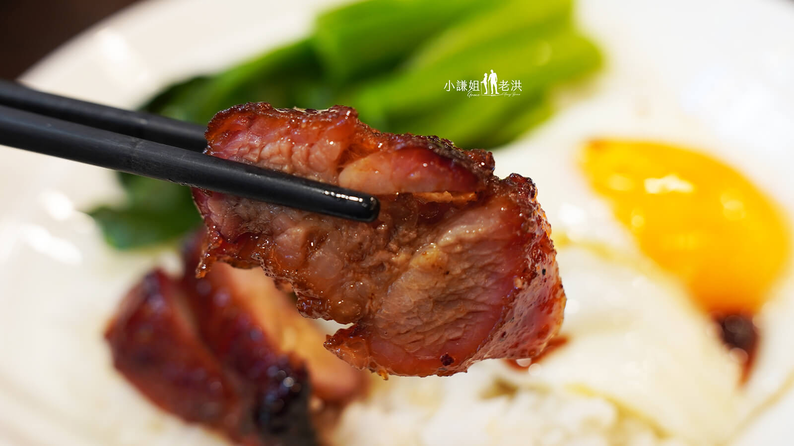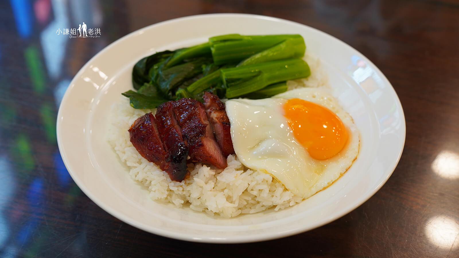 小謙姐因為吃過雲吞麵了,而且這裡之前才剛吃過附近的乾炒牛河,只能點一份也是店內招牌的「叉燒飯」與老洪一起分享;話說兩人的胃容量真是不頂用,這麼多美食擺在眼前也只能忍痛放棄,一種都只能叫一份兩人分食😓(這時後還真羨慕大胃王的胃容量)。