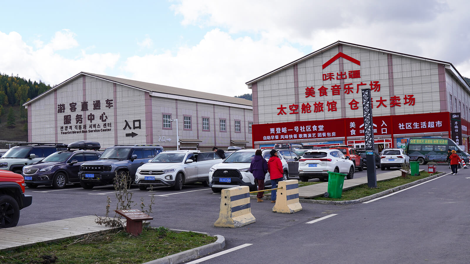 一進入賈登峪之後,直接開進去下面的停車場,售票與景區直達車都在同一棟。