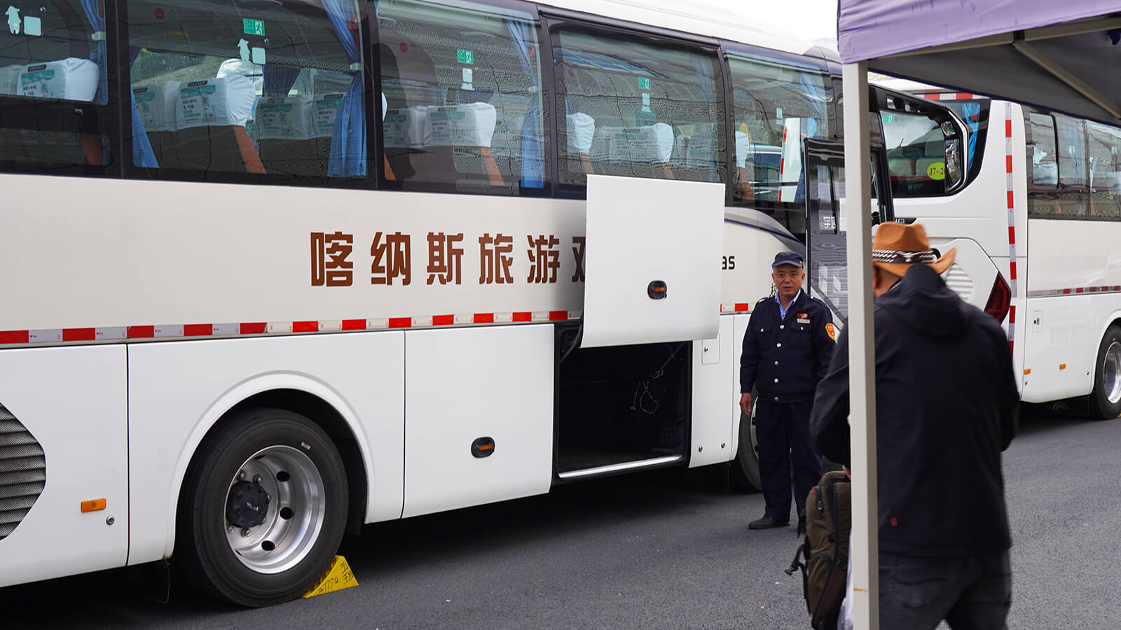 搭乘巴士抵達【喀納斯遊客服務中心】終點站下車