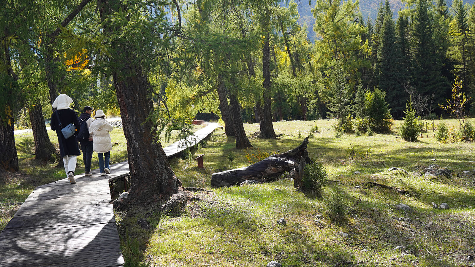 在這個宛如仙境一般的山谷間漫走,一路雪山與秋林、綠草地、藍色喀納斯河相隨,心情愉悅腳步輕盈,有機會再來時,我願意保留兩天時間在這裡與山谷為伴。