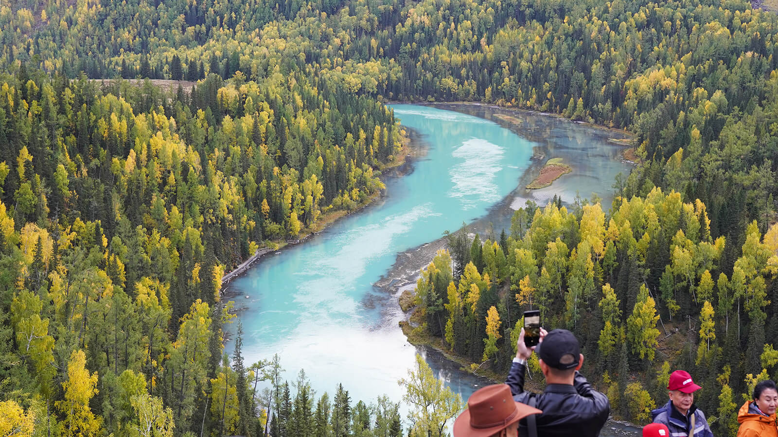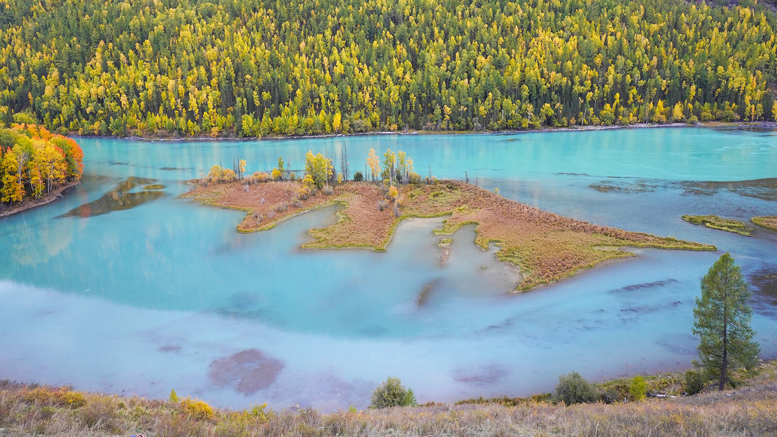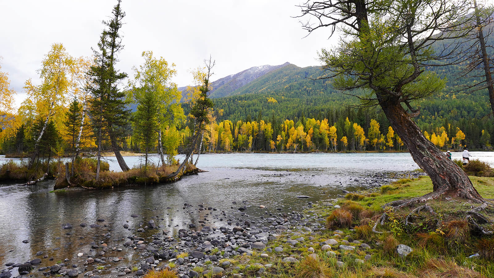 藍色的喀納斯河搭配橘橘黃黃的秋色樹林,顏色是如此的強烈對比,難怪會被譽為”上帝打翻的調色盤”看得人如痴如醉。