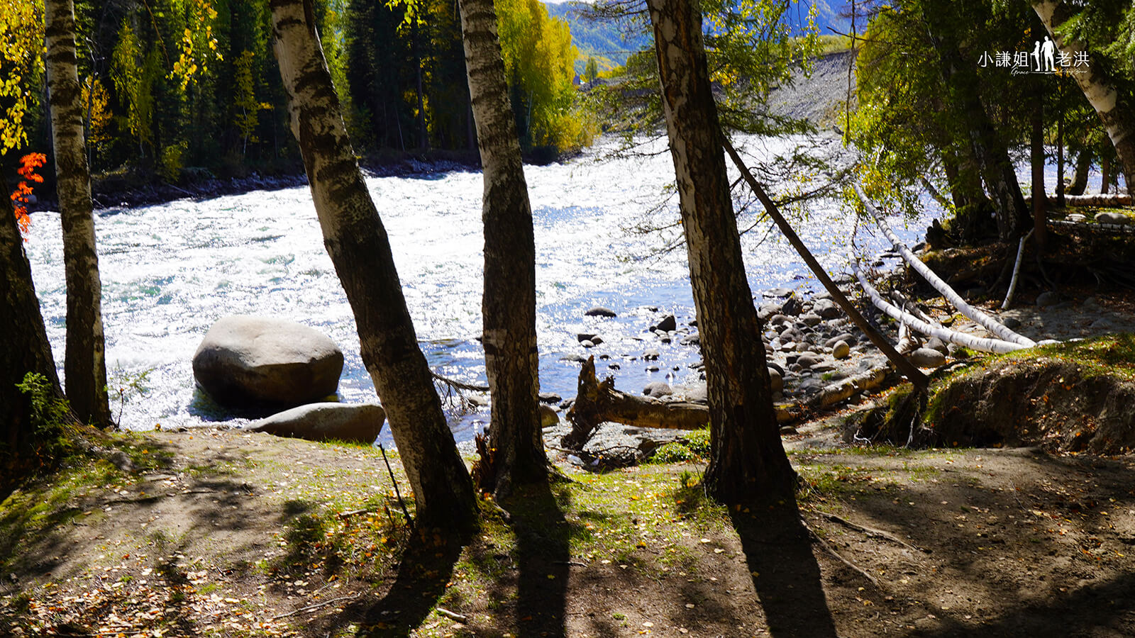 返程從山上往下望去,那個山谷間的神仙之地就是禾木村,整個被白樺林包圍著,三個小時裡徜徉在重山峻嶺秋林草原之間,好像做了一個很美很美的夢,回到禾木村的白樺林,穿過河邊的樹林蒂芬妮藍漸層的河水陪伴,夢也該醒了。