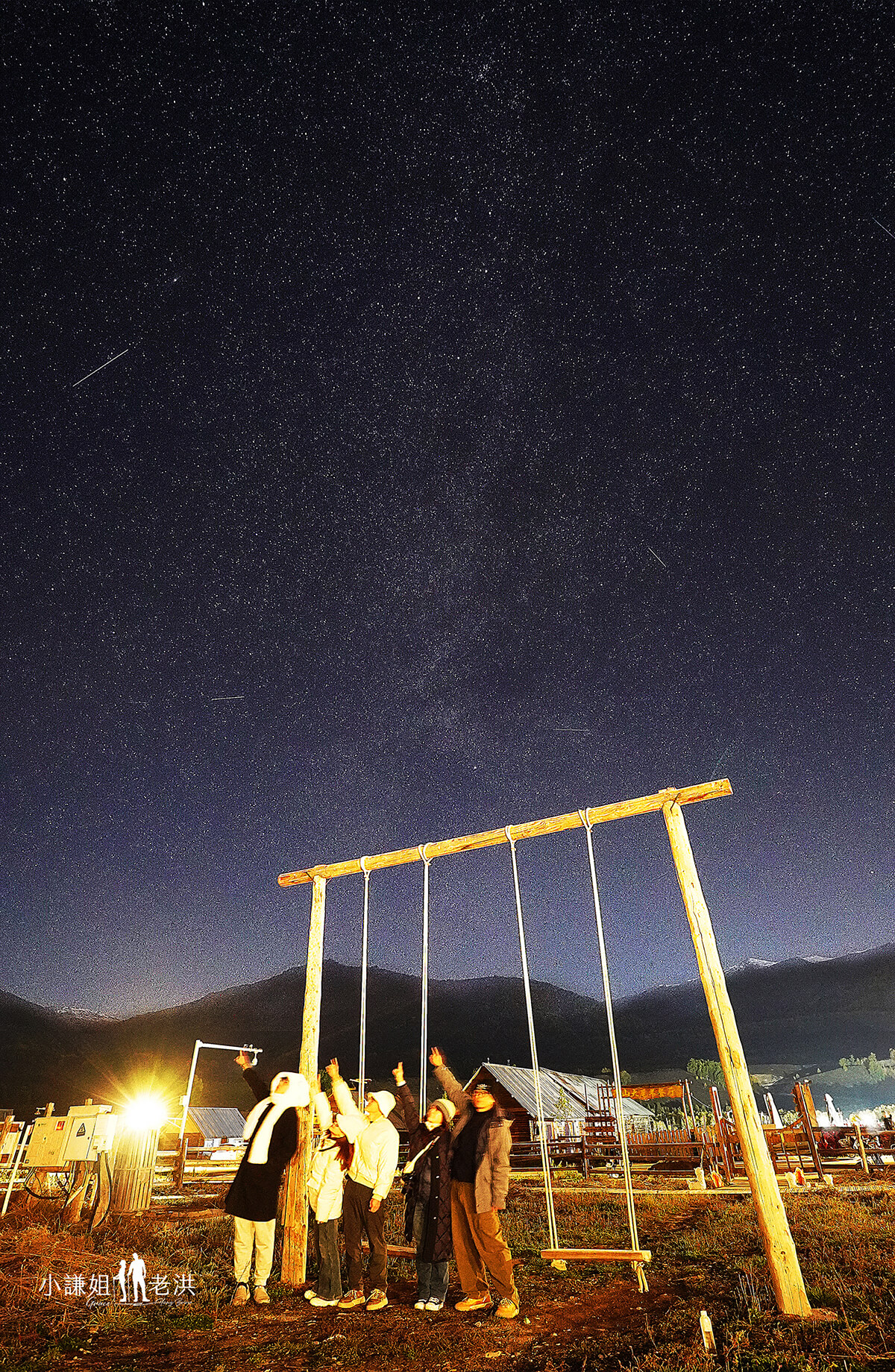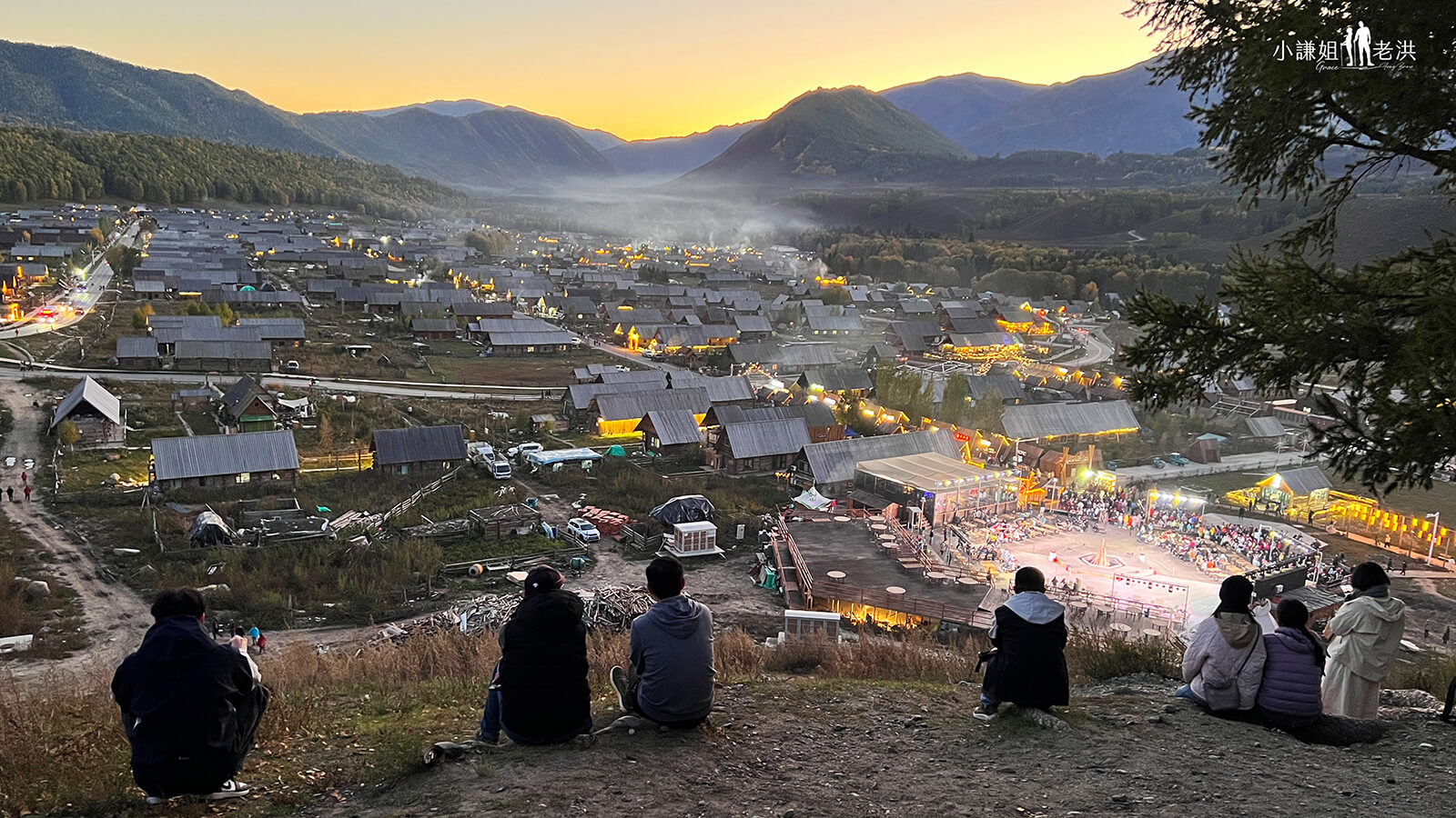 吃完飯先回民宿放東西後,接著就該去小小爬個小山坡消消食,放鬆看看禾木村全夜景休息一下,環山秋林中燈光點點屢屢炊煙,橘紅的秋葉襯托下悠美閒逸盡顯無遺。