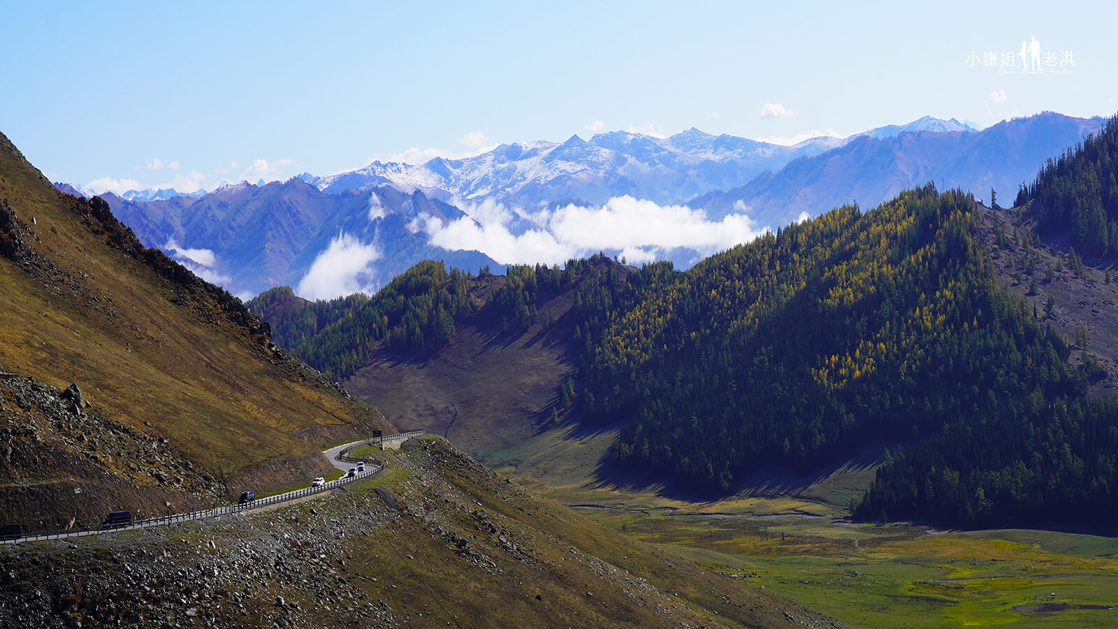 從賈登峪美麗的山谷,一路經過森林、峽谷、河流、濕地、雪山、草原牧場、石林多種風光,Z字型山路一直往下開到禾木。