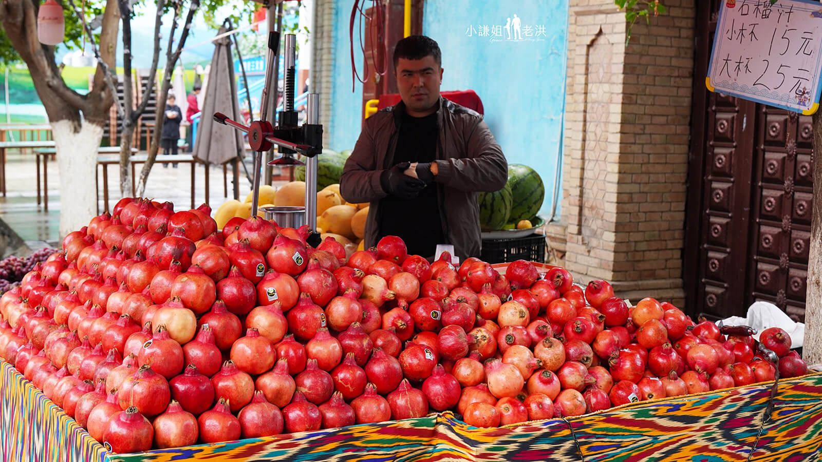 當場現榨的石榴汁完全不加一滴水喔~我們買了1大杯1小杯,老闆總共拿了10顆榨汁😱😱😱,回台灣買一顆要$50元耶!!!!不過味道酸酸澀澀帶著微微甜味,有些人可能會不喜歡。