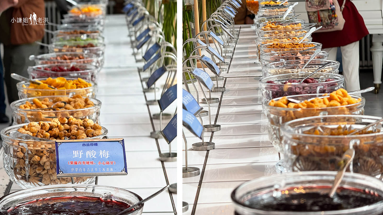 這邊另一個特色就是整桌30種左右的配料可以加,隨自己的喜好愛加什麼自己隨意搭配,各種新疆特色的天然果醬、果乾、堅果、餅乾讓人眼花撩亂。