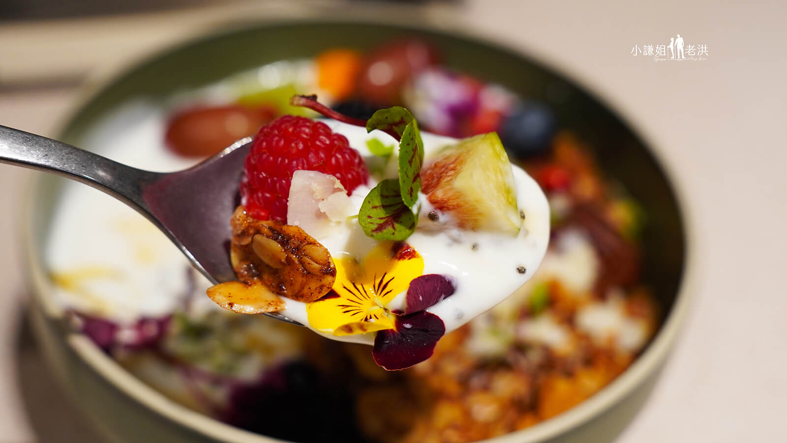 這碗誠意滿滿裡頭使用多種高級食材,光是用眼睛看就是種享受了,更別說自製潤口微酸的酸奶搭配糖烤香脆燕麥片,在嘴裡咀嚼時發散出酸酸香香甜甜脆脆的美妙滋味,多吃也完全無負擔,😍😍😍每一口都好滿足。