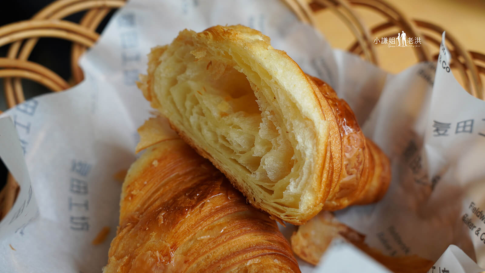 因為前一天沒吃到剛出爐的牛角麵包,今天特地買來試試,果真更酥更香蓬鬆多層次的內層口感更棒👍 👍 👍