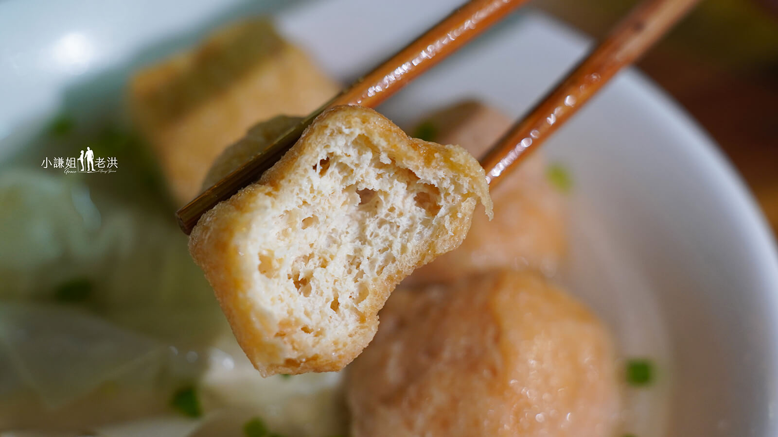 這家店的油豆腐泡裡頭的氣孔吸飽湯汁,口感非常非常柔軟,每一口濃郁的豆香與肉香完美交融,跟在台灣吃到的那種有嚼勁的油豆腐泡有著截然不同的口感,對女生來說,其實吃完這分量很足的一碗之後就已經很飽足,單純是鮮香滋味絕對是款非常對台灣胃的小吃。