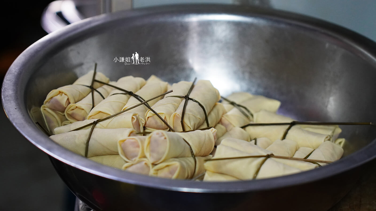 就是純黃豆製做而成的千張,像很薄很薄的豆乾一般,以千張為外皮裡面包裹新鮮豬肉餡,四個一綑的綁起來,跟煮水餃一樣再用水煮熟。