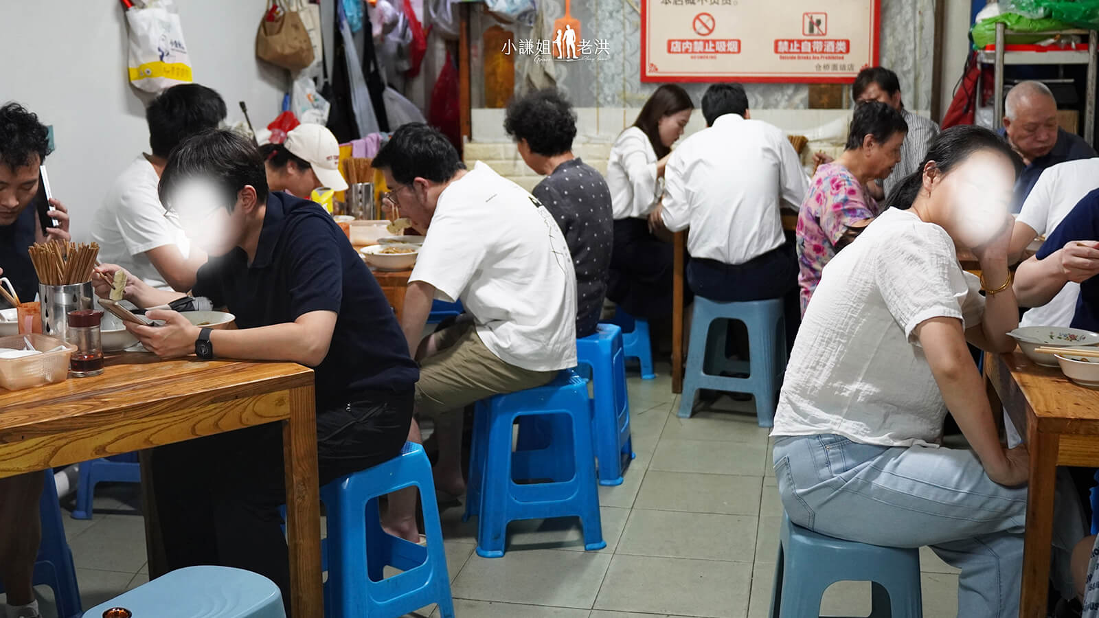 店內空間狹小,只能擺設了6張小方桌,但是大家都吃得很快所以翻桌率很高,依序排隊後,店家就會安排座位,客人非常井然有序入座。