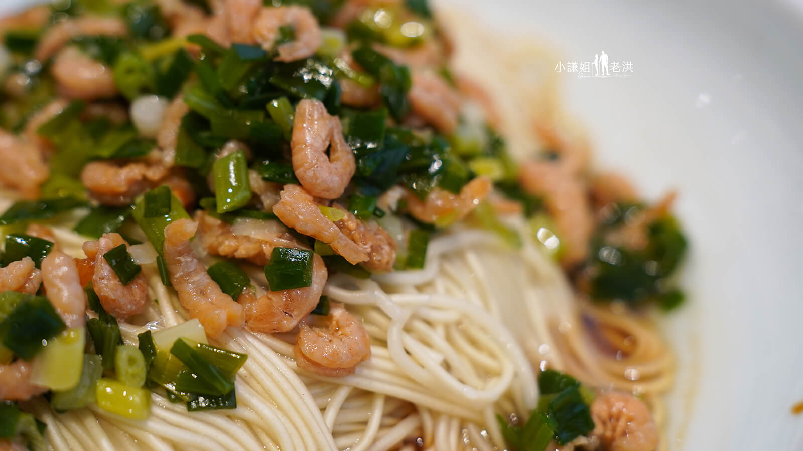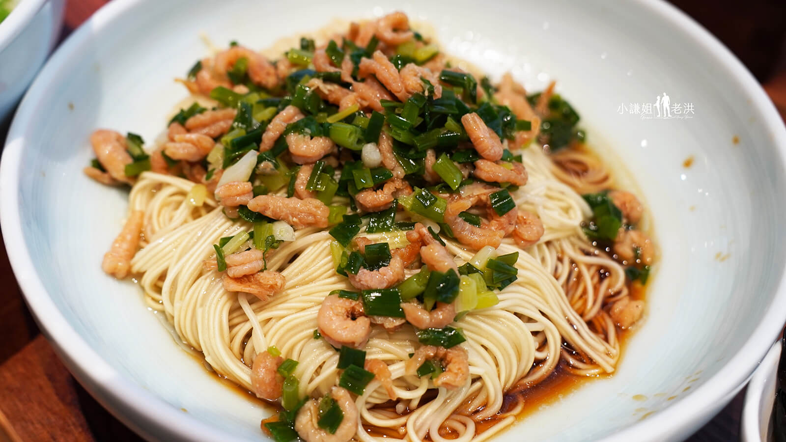 拌麵是上海最在地的庶民小吃,相當於台灣的巷口陽春麵的存在一般,一周吃上幾回也是日常生活的一部分,這樣尋常的一碗不起眼的乾拌麵,卻能勾起多數上海人的思鄉情懷;今天點的雖然是以開陽(蝦米)為主角的乾拌麵,但是基礎還是那個用青蔥炸的蔥香四溢的蔥油為基礎,再淋上靈魂豉油醬汁,煮得稍稍有些硬度的細麵條,用極為迅速的細小麵體吸附醬汁,原本溫和油潤的乾麵,在濃郁海味的蝦米加持下,滋味更上一層,簡簡單單樸實的美味。