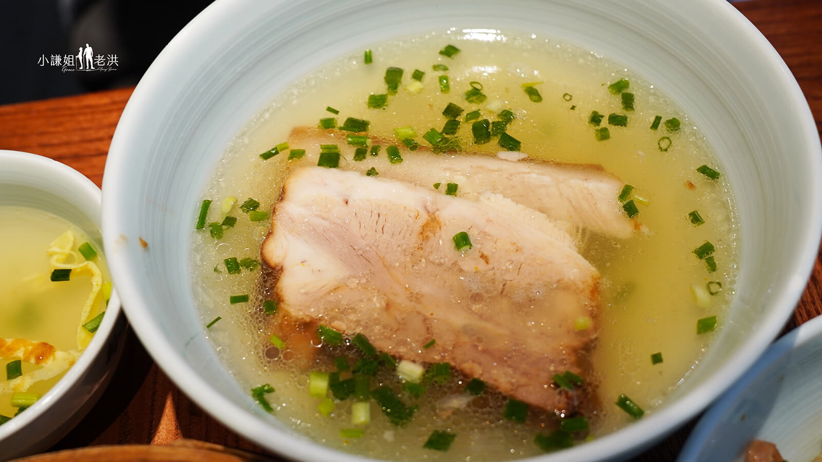 這塊燜肉分量不小耶!!!送上桌時是冷的,所以附上一碗熱高湯,吃之前把肉放進熱湯裡溫熱後,利用熱氣讓油脂化開之後再吃會更好吃,燜肉本身是經過久燉口感非常酥爛,一抿就馬上化開完全沒有纖維感,調味不會過重,單吃也非常好吃,泡過的熱高湯多了些許油潤口感也很清爽好喝。