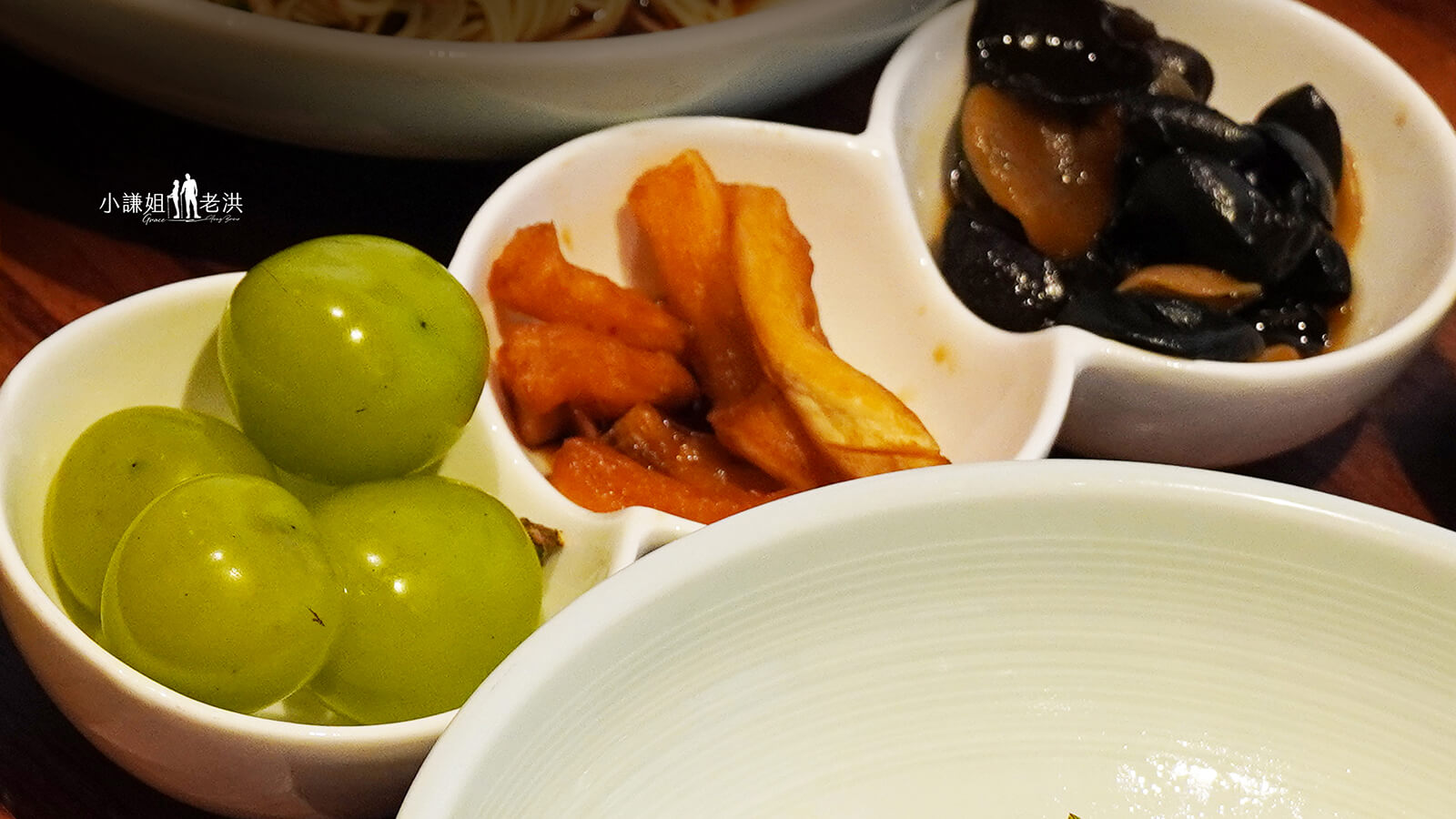 黑木耳與蘿蔔兩種小菜都帶著脆口微酸爽的好滋味,一點也不馬虎,大顆綠葡萄非常清脆香甜。