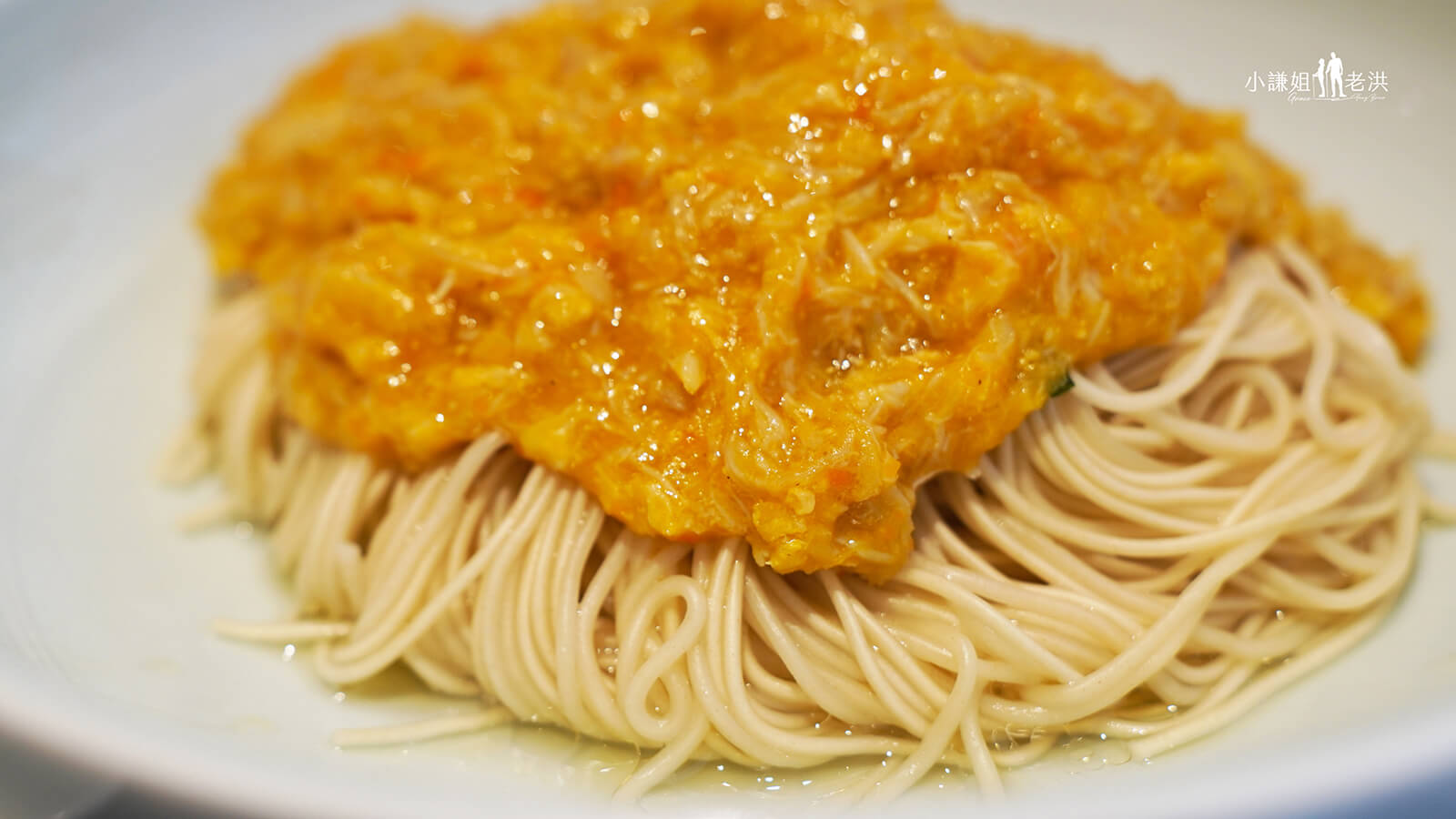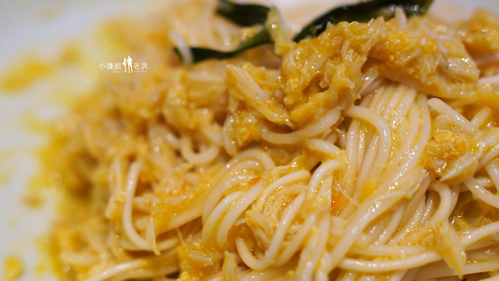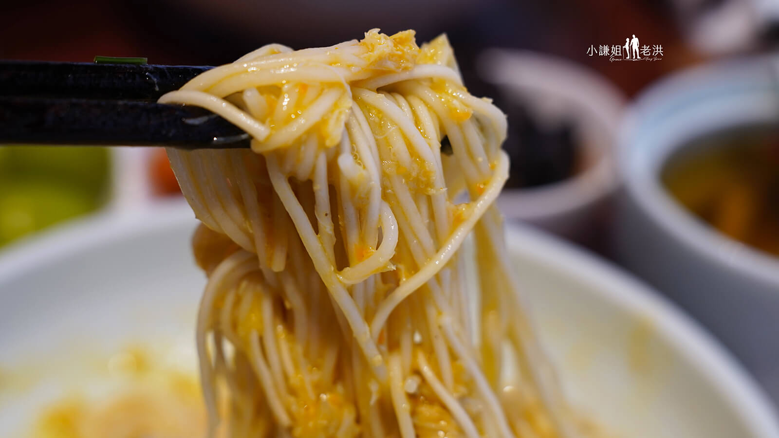 先把蟹粉醬與細麵充分拌勻,讓每根麵條裹上一層金黃金黃的蟹粉,空氣中鮮香的蟹味慢慢飄散開了,整個空間瀰漫著令人嘴饞的香味,唆上一口麵,滿嘴的鮮味濃烈與舌尖牙齒難分捨,多希望這種幸福滋味每天每天,彈彈的細麵條與綿綿鮮嫩的蟹粉,像是最佳拍檔一般,讓人不知不覺中達到身心靈大大滿足,立刻跟老洪來個幸福約定☺️明年還要來吃喔~這也太好吃了吧!!!!!!!。
